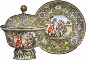 清雍正至乾隆时期铜胎画珐琅神话故事图盖碗及盘 盖碗高13.5、盘直径14.5厘米,估价10万—15万欧元