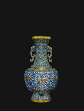 清乾隆铜胎掐丝珐琅云蝠纹双耳瓶 高39.3厘米,估价30万—50万美元